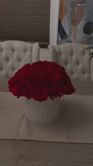 A bold declaration of love and sophistication. Lush red roses arranged in a luxury box, symbolizing timeless passion and refined elegance. Perfect for anniversaries, luxury gifting, or making a grand romantic gesture.